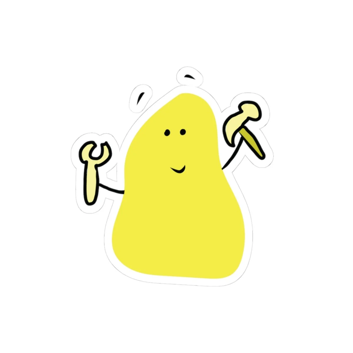 A bright, cheerful sticker that brings a tiny burst of workshop energy to your everyday things. The little abstract yellow character holds a wrench and hammer, beaming with can-do attitude—like a pocket-sized mechanic cheering you on while you tackle projects, organize your tools, or decorate a laptop. Place it on a journal, toolbox, or window to add a playful, handy touch that reads like a wink from a fellow maker. The glossy finish makes the colors pop and the smooth application means it goes on cleanly, so the sticker looks crisp on notebooks, planners, and equipment cases. Adults who love DIY, crafting, or lighthearted industrial charm will appreciate how this sticker adds personality to workspaces and gift swaps around maker nights, garage projects, or studio refreshes.
