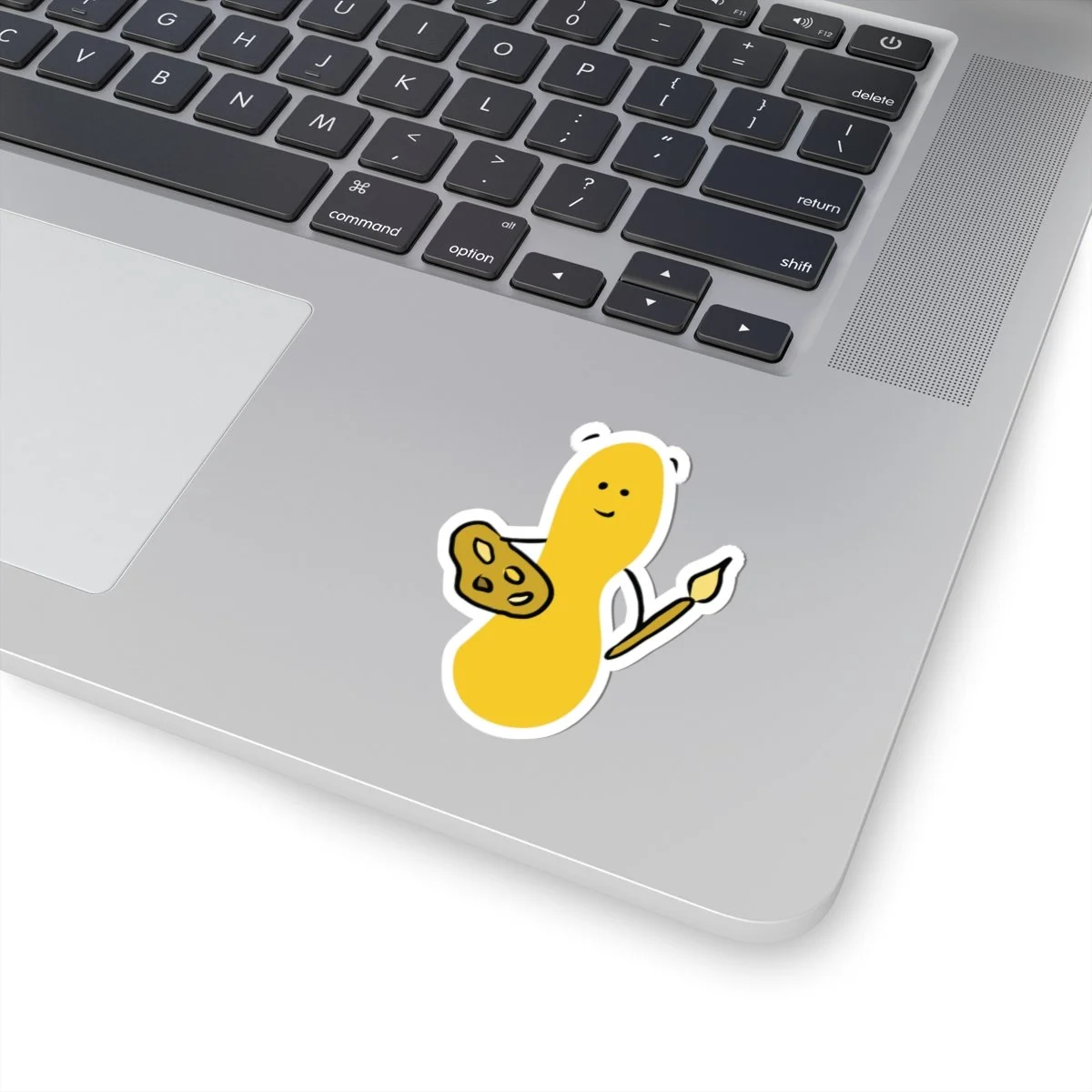 Bright and playful, this kiss-cut sticker puts a small, abstract yellow artist front and center. A cheerful brush in one hand and a paint palette in the other, the character seems mid-stroke—joyful, focused, and a little mischievous. It’s the kind of little companion that livens up a laptop corner, peeks from a sketchbook, or adds character to a studio window. The glossy surface makes the colors pop and gives the piece a lively sheen, while the precise kiss-cut edge makes peeling and placing effortless. Made from durable vinyl with strong adhesive, it sticks smoothly and stays put on flat indoor surfaces—bringing a splash of studio energy wherever it goes.
