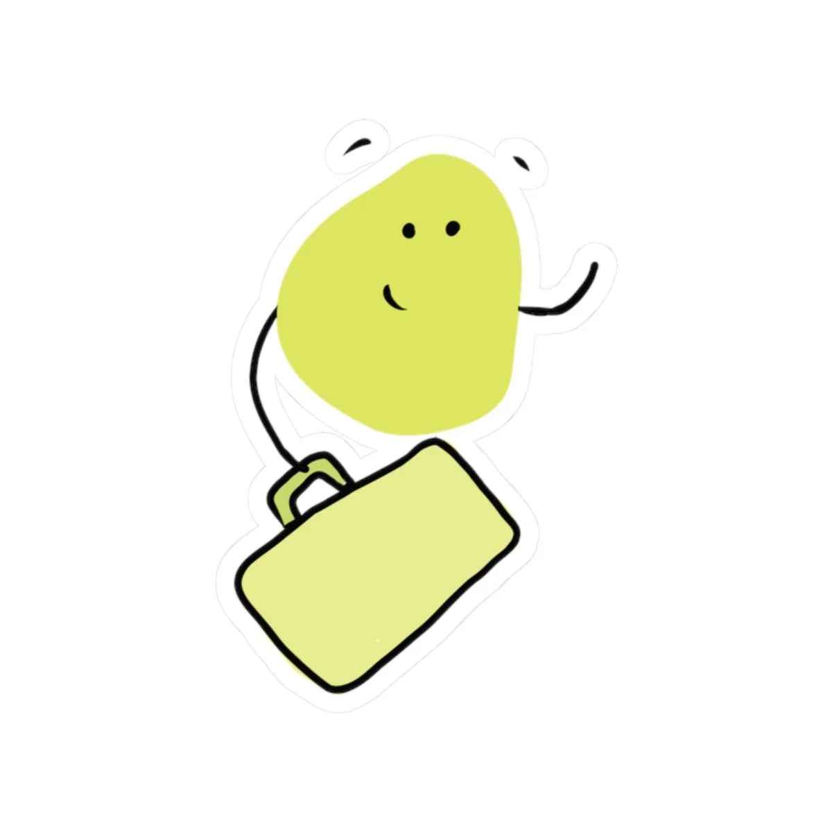 A playful vinyl sticker featuring a simple, charming character holding a briefcase and waving. The glossy finish catches light and color, making the little figure pop on laptops, journals, planners, or office water bottles. Its bright, eco-solvent printed colors keep the design lively while the durable vinyl and strong adhesive hold it firmly in place on smooth, flat surfaces. This sticker slips easily into the rhythm of a busy workday—tucked on a laptop lid, peeking from a notebook, or brightening a home office corner—where it reads like a small, encouraging nod to the daily commute and the tiny rituals of getting things done.