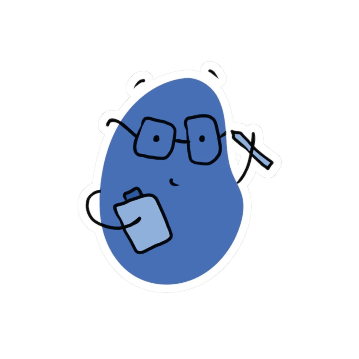 Smart Blue Character Sticker | Cute Abstract Character with Glasses, Pencil & Clipboard